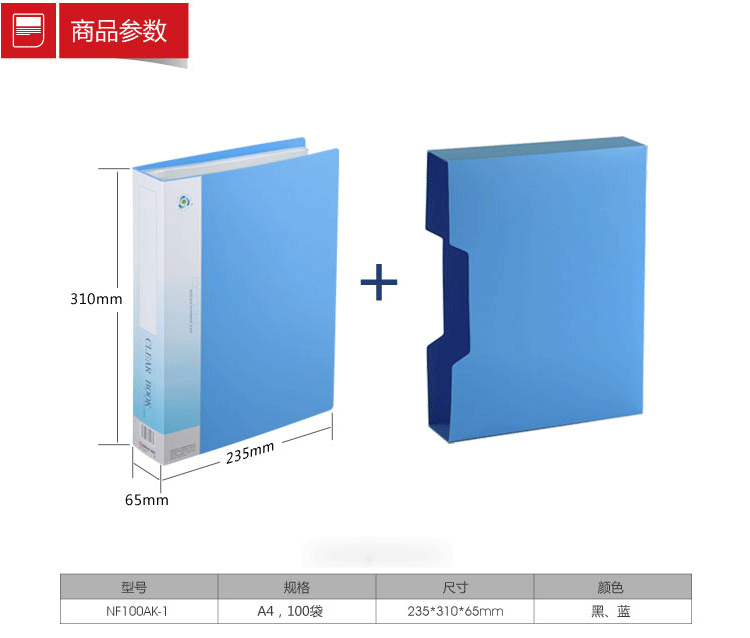 齐心 NF30AK资料册A4纸商务办公学生文件档 A4 30页内袋 蓝色
