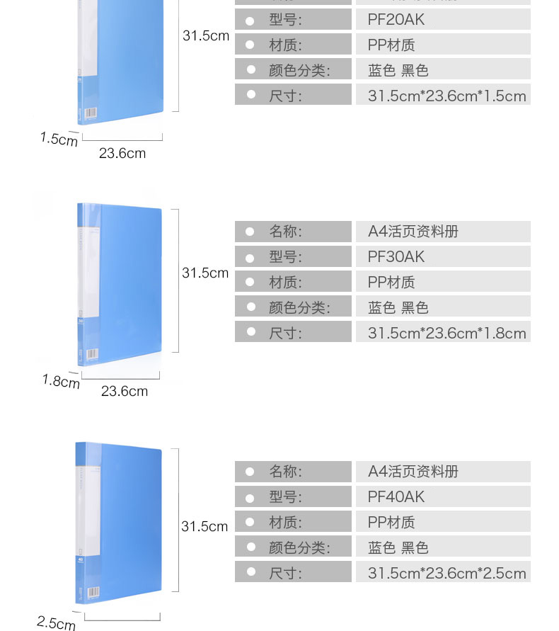 齐心 PF40AK 透明插页袋资料册A4 40页内袋 蓝色