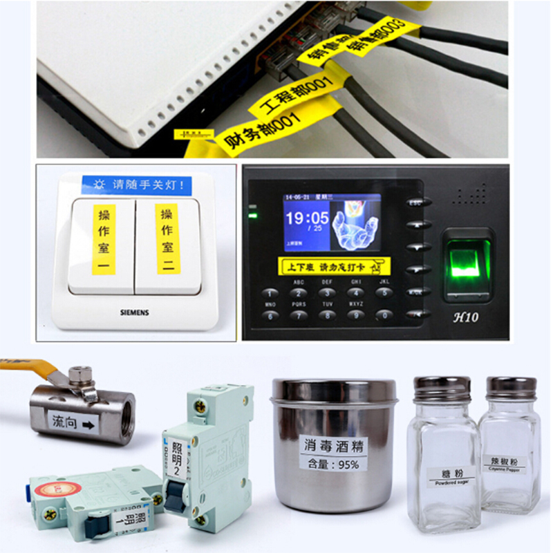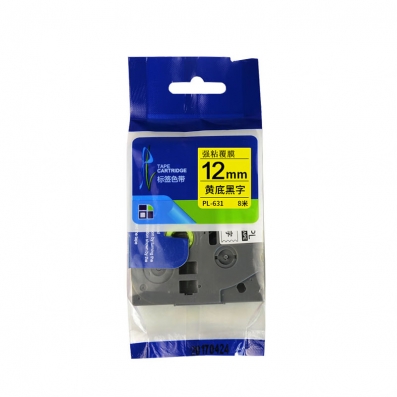 普贴 标签带国产标签打印机色带标签纸打标机不干胶防水贴纸 12mm 适用兄弟牌标签机色带打印纸 PL-631黄底黑字