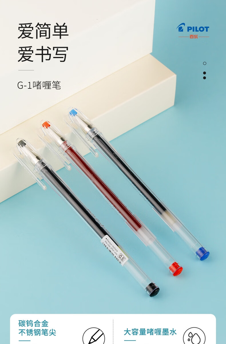 百乐(PILOT)BL-G1-5T 子弹头中性笔 0.5mm啫喱笔水笔签字笔 学生考试笔 红色 计价单位:支