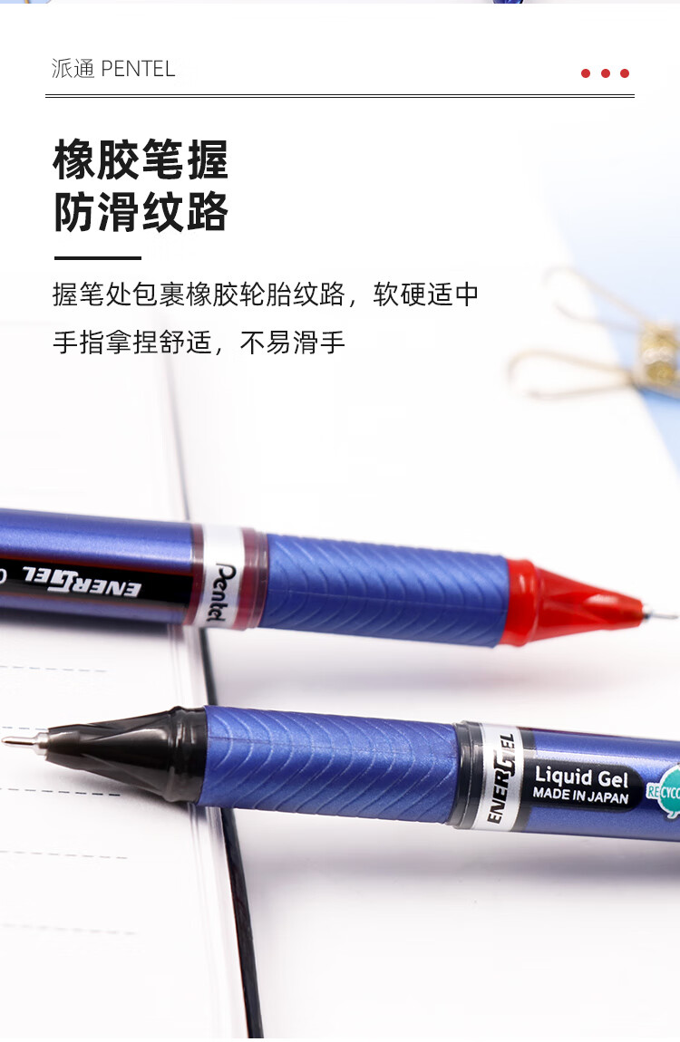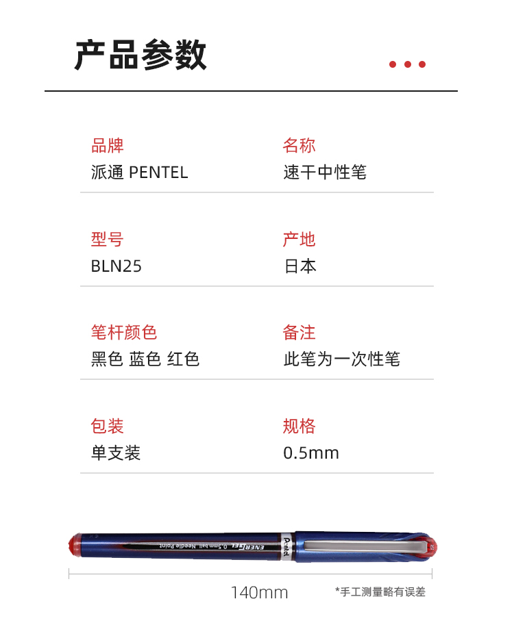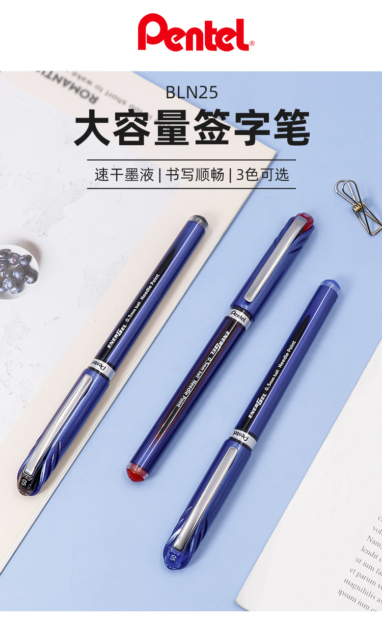 日本Pentel派通BLN25中性笔学生用考试速干水笔0.5大容量签字笔 黑色 计价单位:支