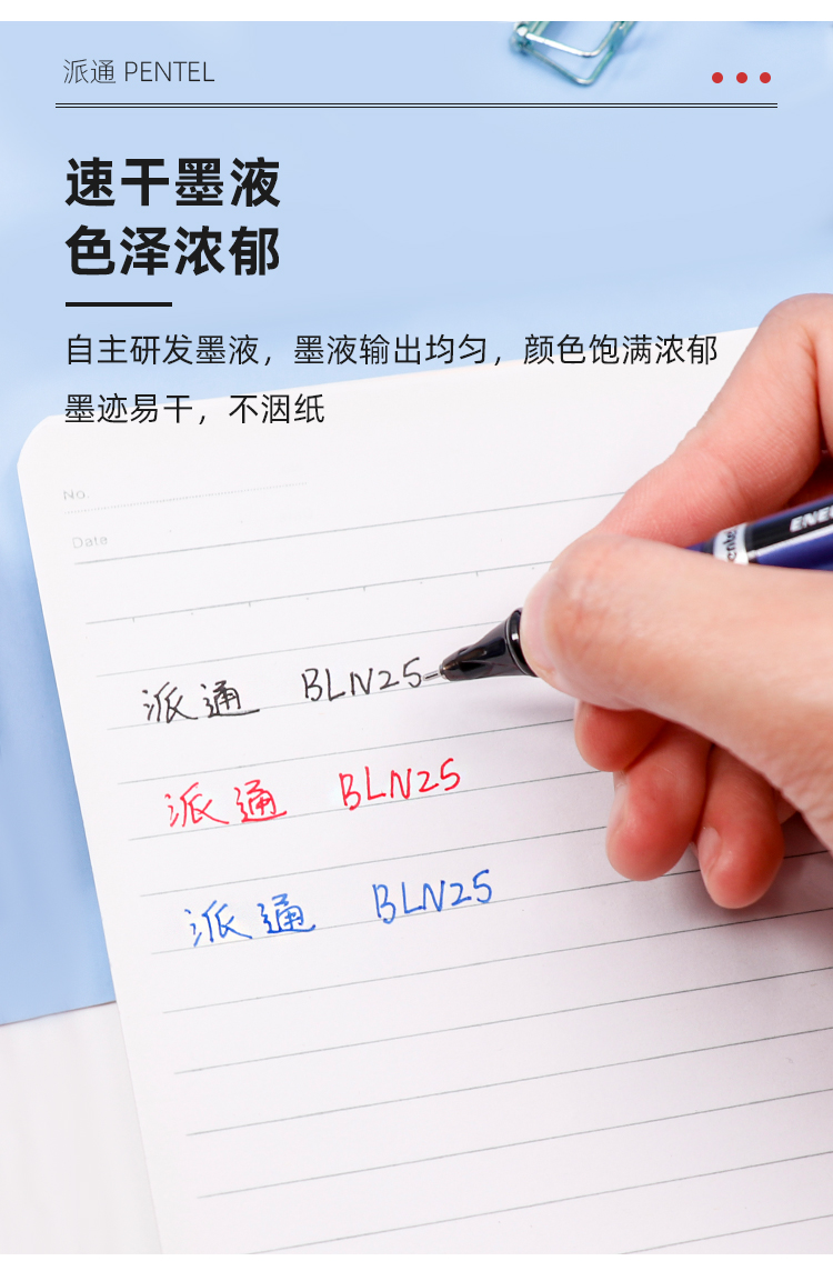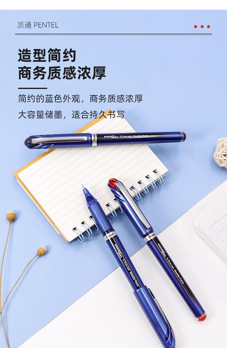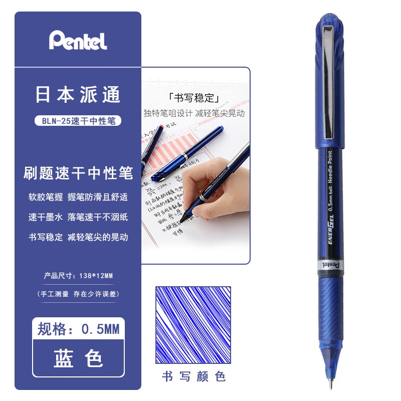日本Pentel派通BLN25中性笔学生用考试速干水笔0.5大容量签字笔 蓝色 计价单位:支