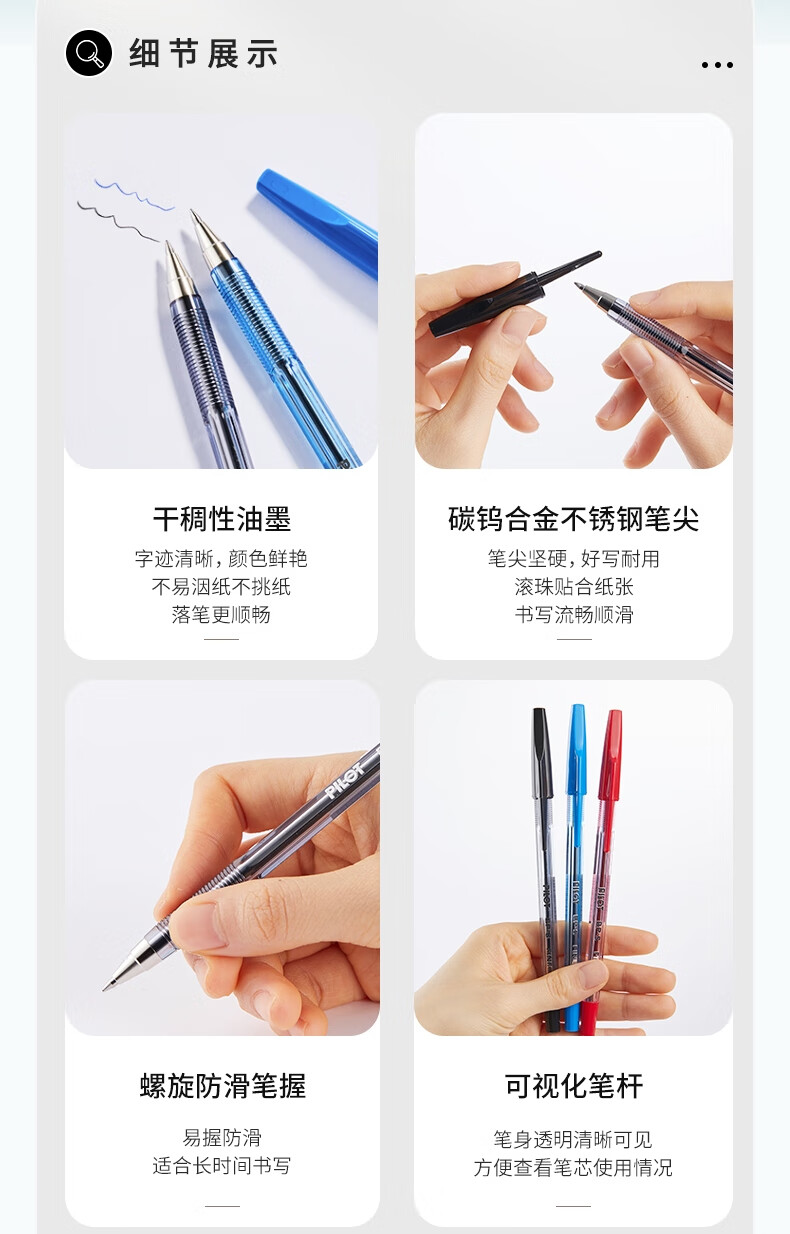 PILOT百乐BP-S-F 啄木鸟圆珠笔0.7MM原子笔学生中油笔宝珠笔 红色