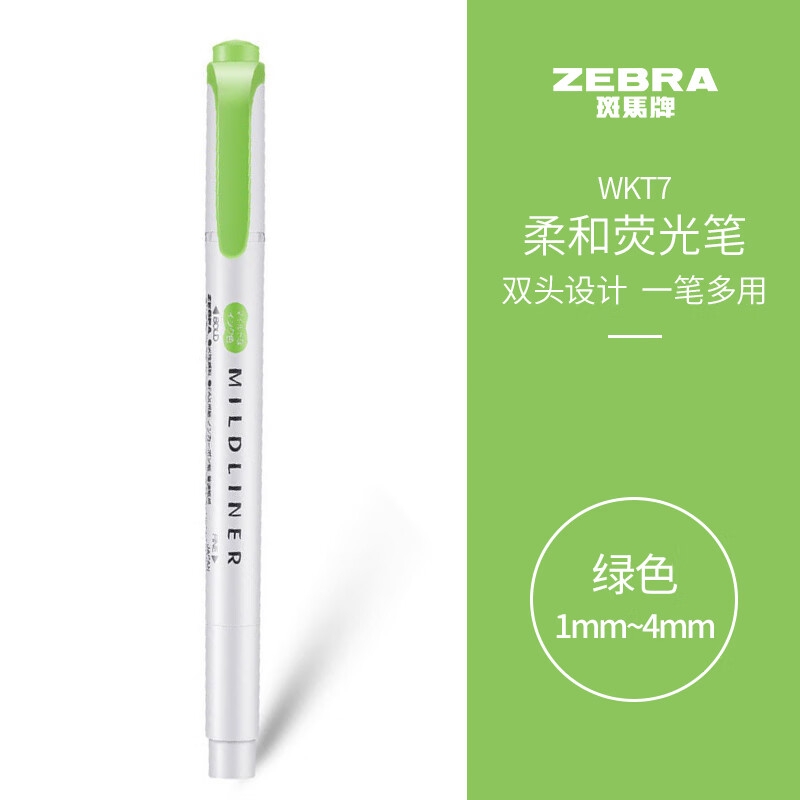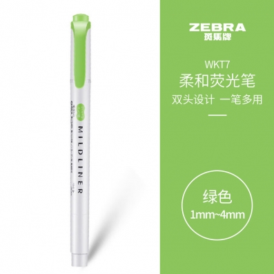 斑马牌 (ZEBRA)双头柔和荧光笔 mildliner系列单色划线记号笔 学生标记笔 WKT7 柔和绿