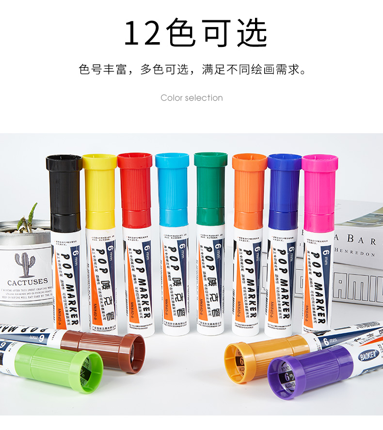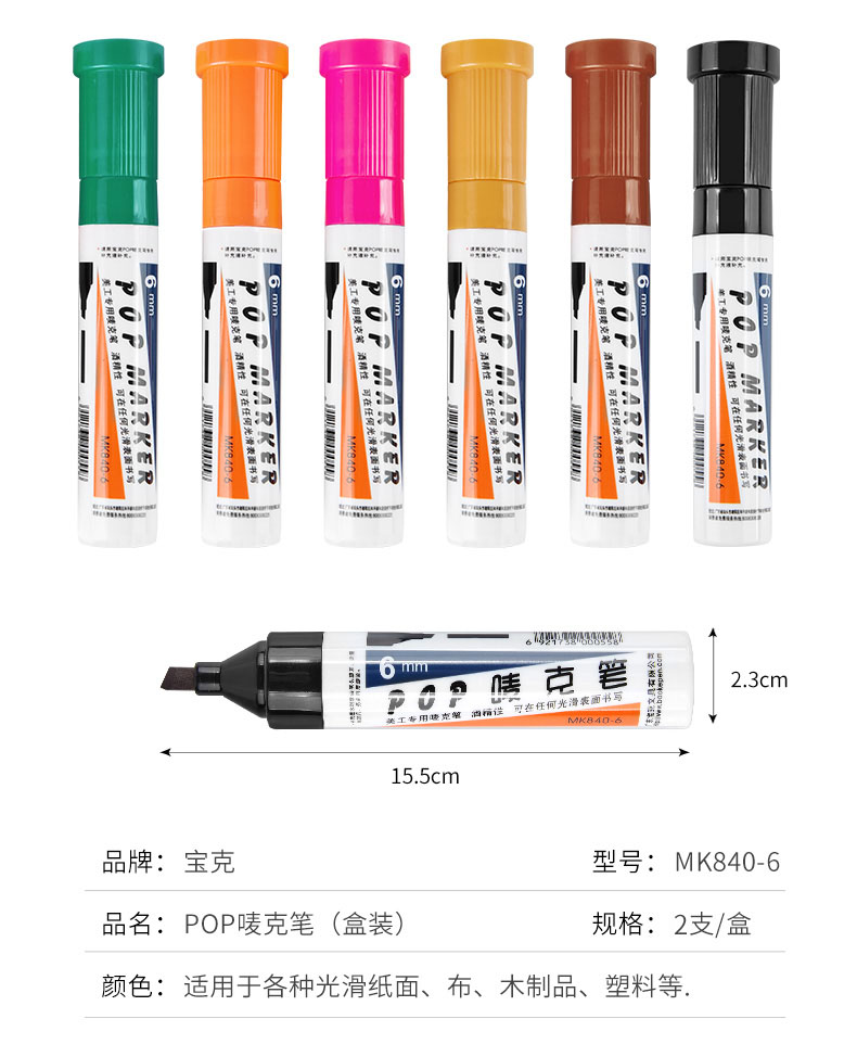 宝克(BAOKE) 6mm 红色 POP唛克笔 海报广告画笔 彩色马克笔记号笔 MK840