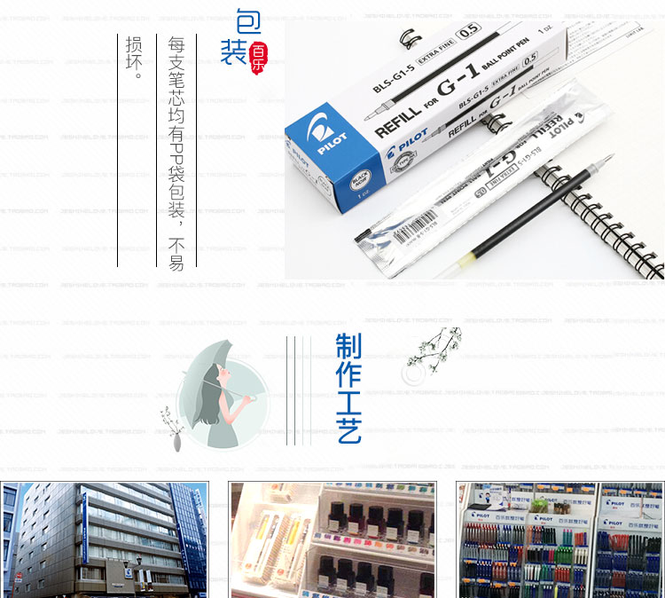 日本百乐(PILOT)BLS-G1-5笔芯 G-1中性水笔芯啫喱笔替芯 0.5mm 蓝色
