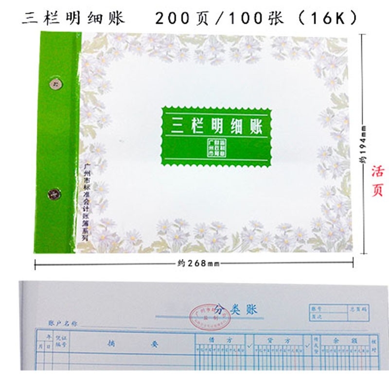 广州立信 16K三栏明细账【100页/200面】