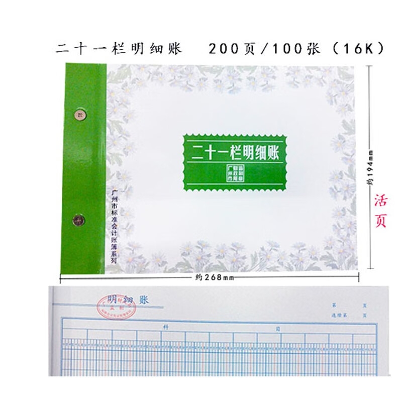 广州立信 16K二十一栏明细账【100页/200面】