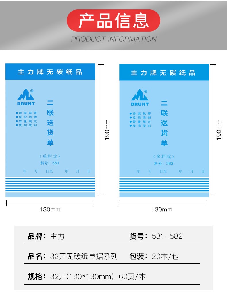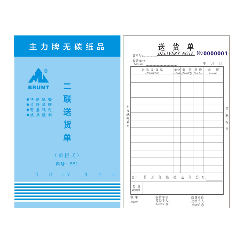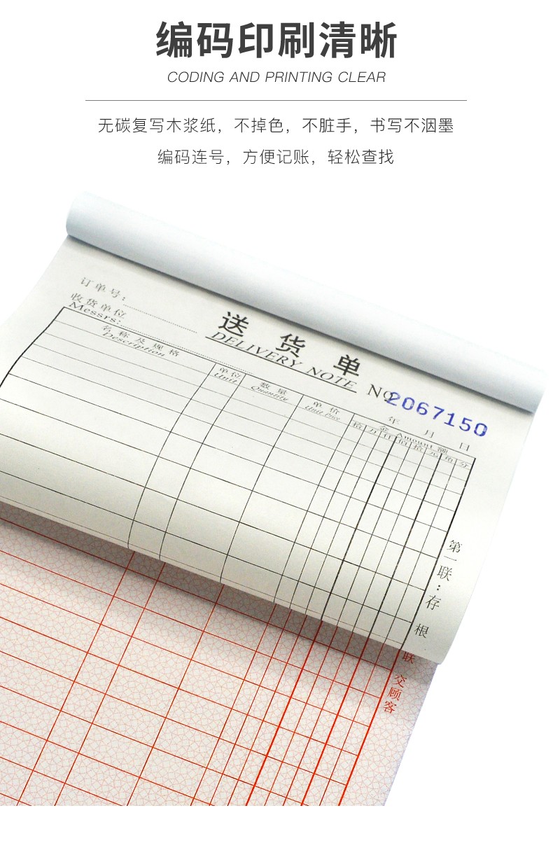 主力送货单 二联单栏无碳复写纸销货凭证记录表单 财会用品单据本 物流送货表 32k 单本