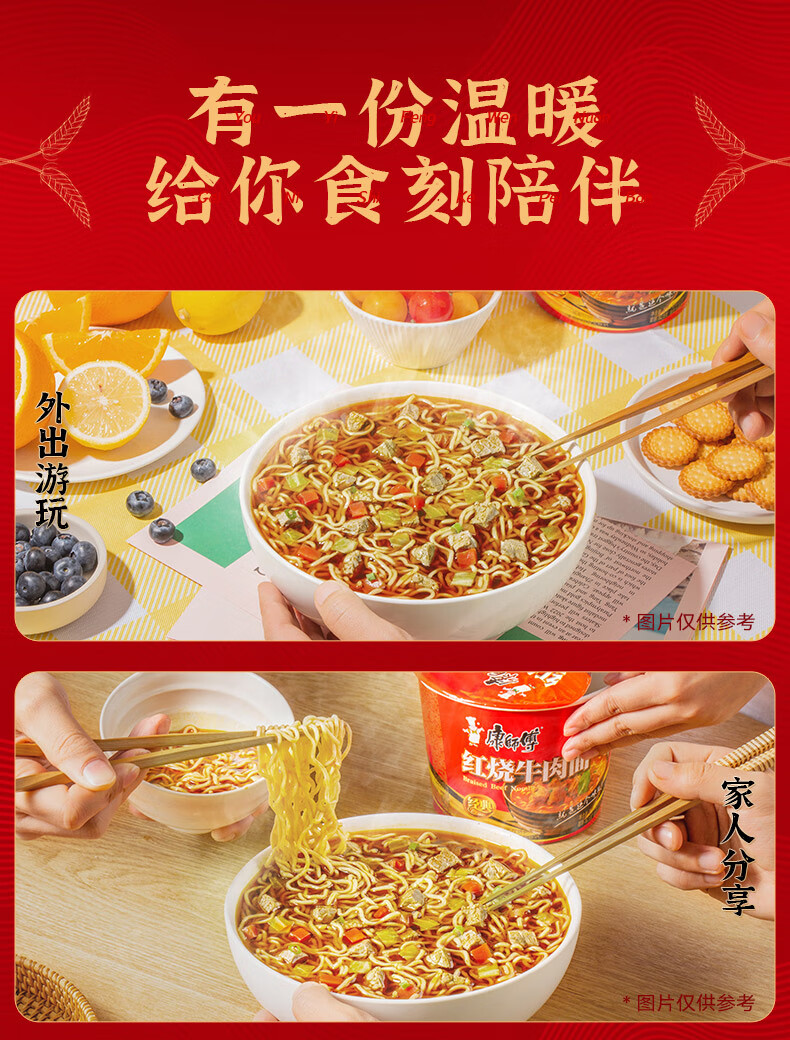 康师傅方便面桶装 经典红烧牛肉面12桶 泡面整箱装速食 方便食品