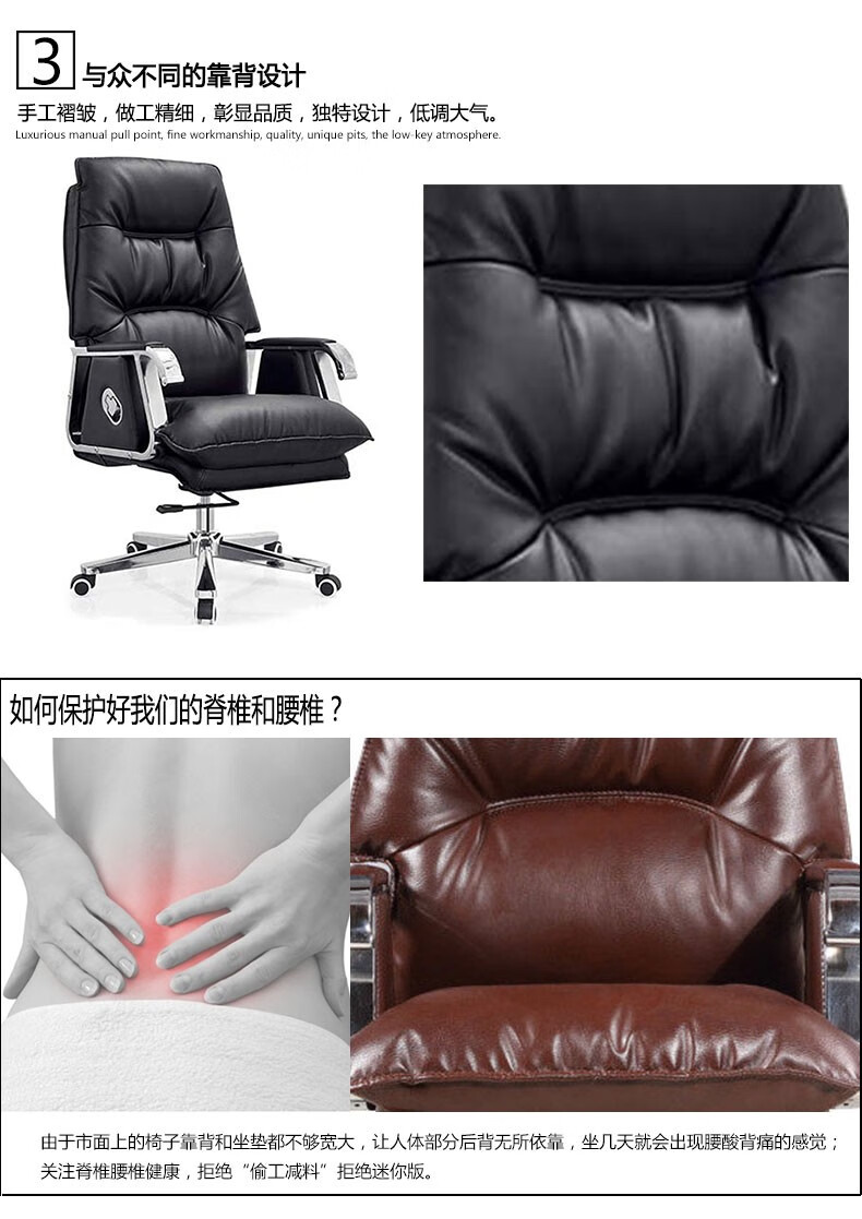 F028 电脑椅家用休闲椅老板椅子办公转椅经理椅可躺中班椅 黑色