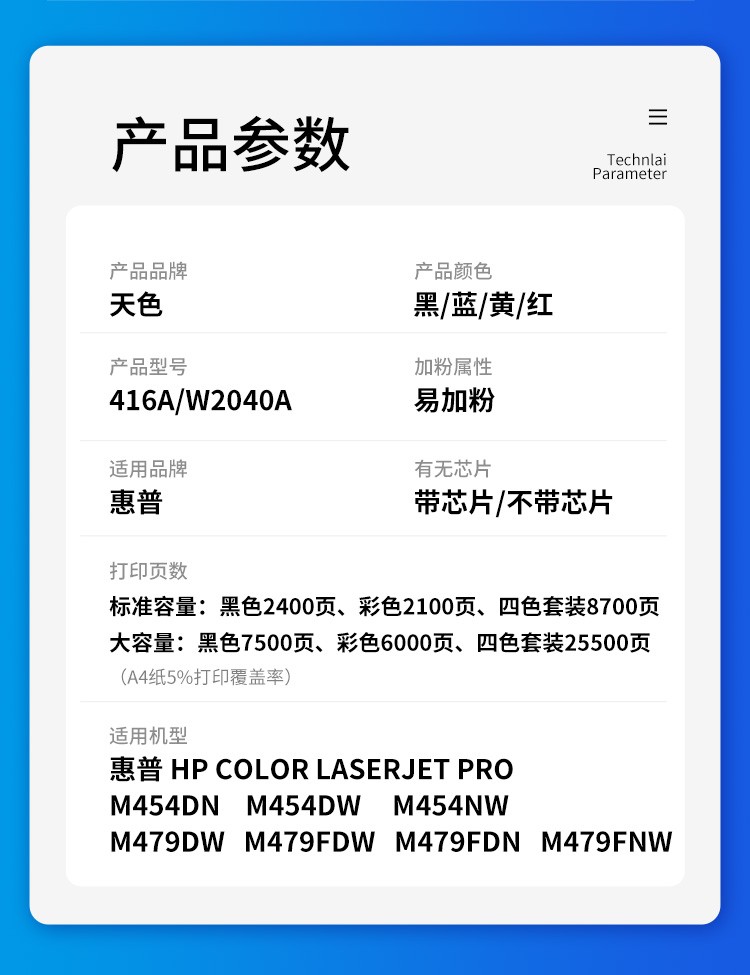 天色416a W2040A 黄色/易加粉/不带芯片(2100页)硒鼓适用惠普m479dw硒鼓m479fdw m454nw hp479dw 416a w2040a墨盒 【2100页】416A硒鼓/黄色/不带芯片 易加粉