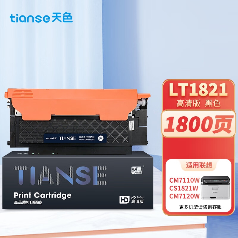 天色LT1821粉盒黑色 易加粉 芯片版(1800页)适用联想cm7120w粉盒CS1831 1831W硒鼓 CS1821 CS1821W cm7110W墨粉 LT1821黑色打印机墨盒lenovo
