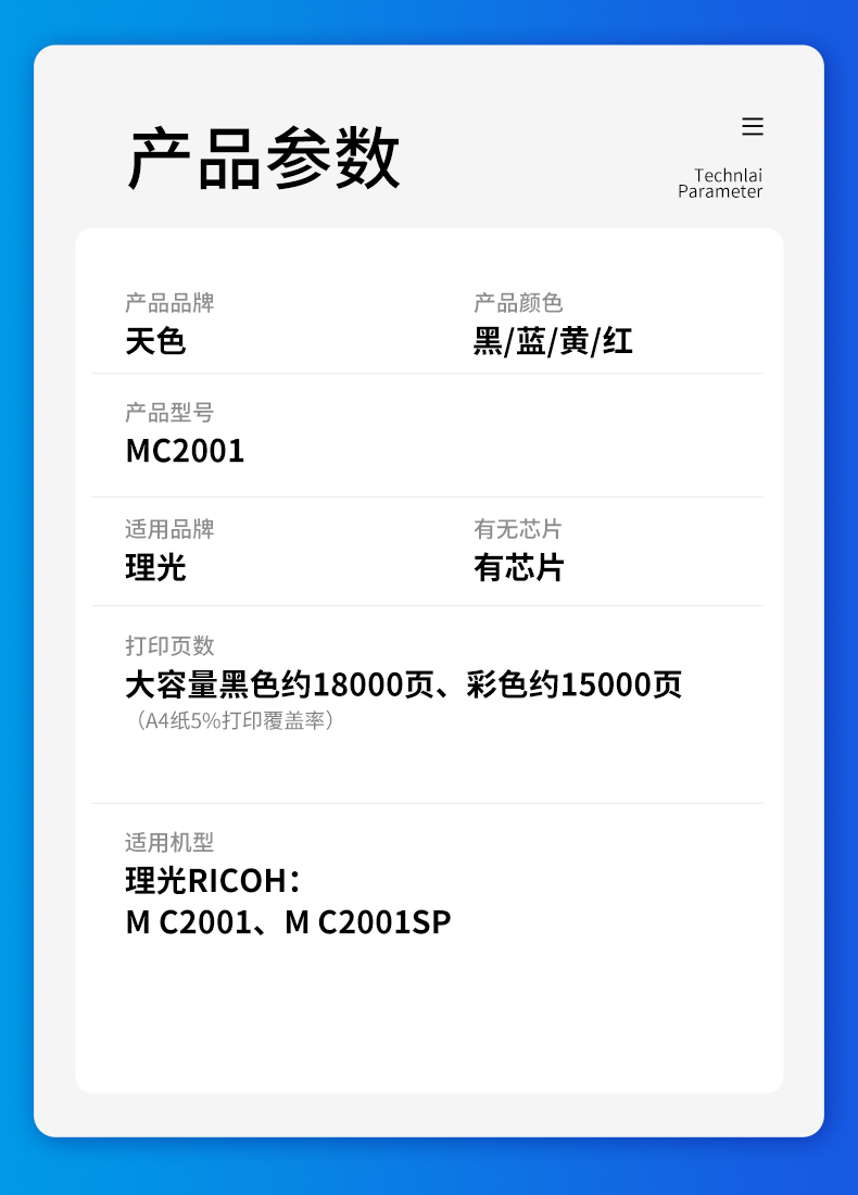 天色(15000页)M C2001红色粉盒适用于理光M C2001ew墨粉盒打印机硒鼓粉盒墨盒C2001 MC2001大容量红色