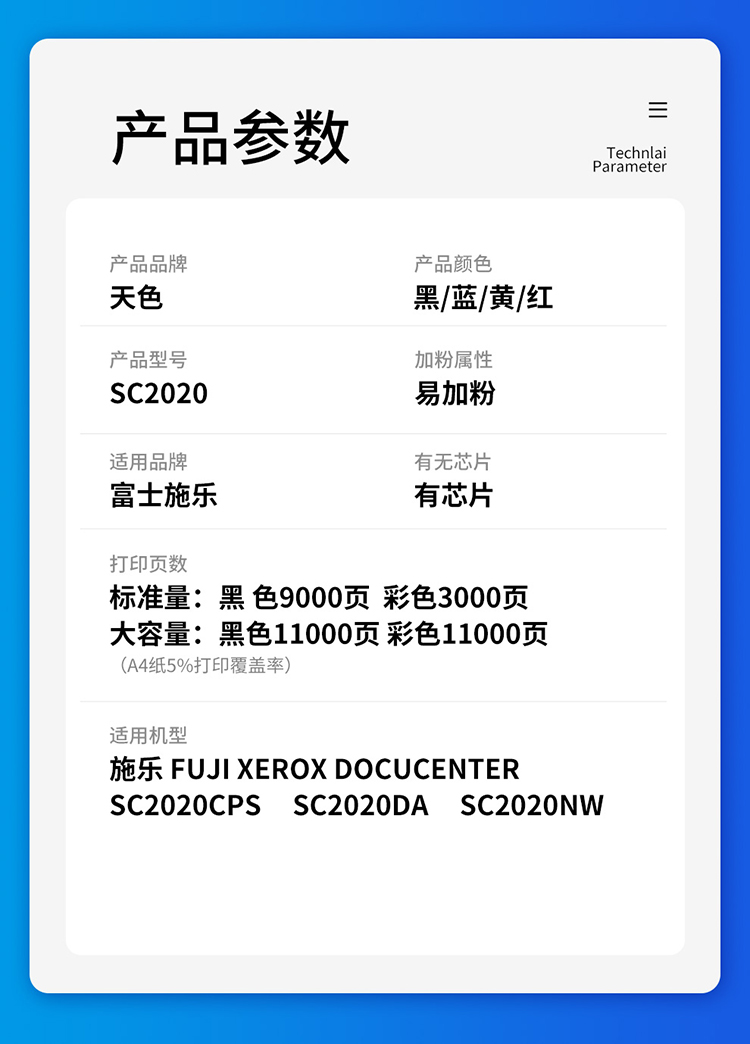 天色(3000页)SC2020粉盒 黄色适用富士施乐SC2020DA粉盒DocuCentre SC2020CPS墨粉盒 SC2020彩色打印机墨粉墨盒 黄色