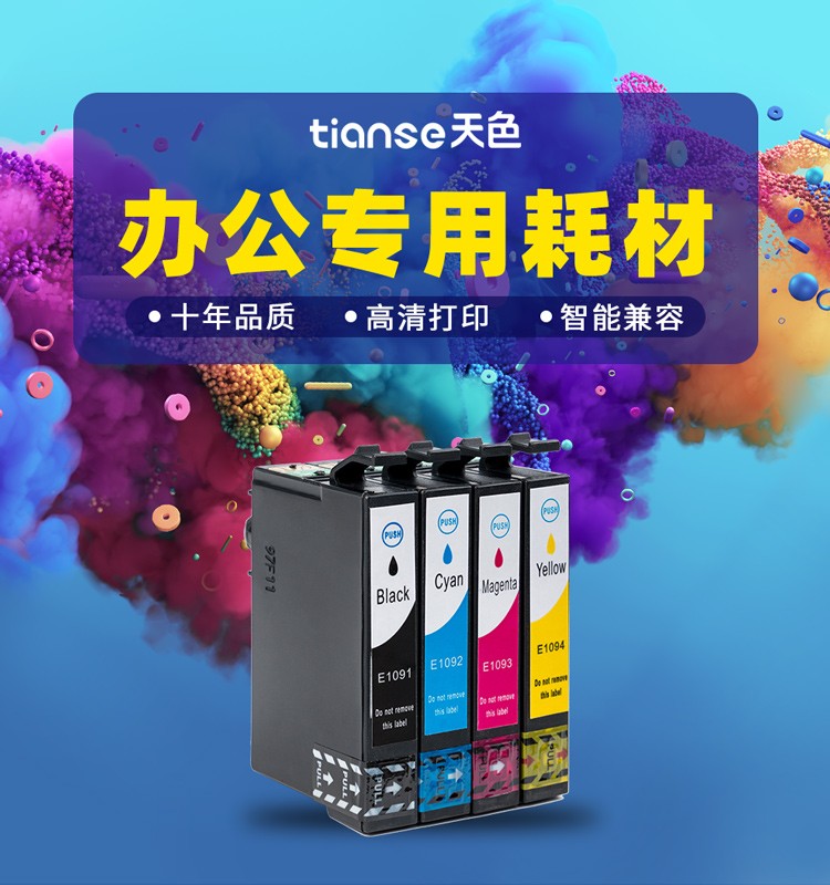 天色T1091墨盒 四色套装墨盒适用爱普生me300墨盒epson me300 109 ne-t1091 600f墨盒1100 【300页*4】T1091四色墨盒套装